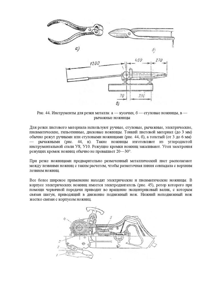 Для резки листового материала используют ручные, стуловые, рычажные, электрические,