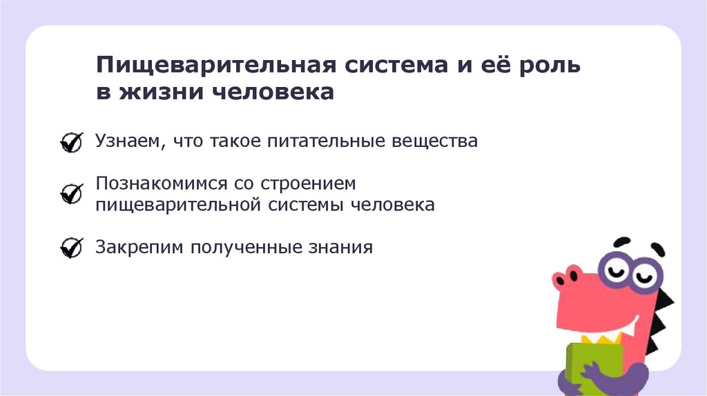 Пищеварительная система и её роль в жизни человека. 3 класс