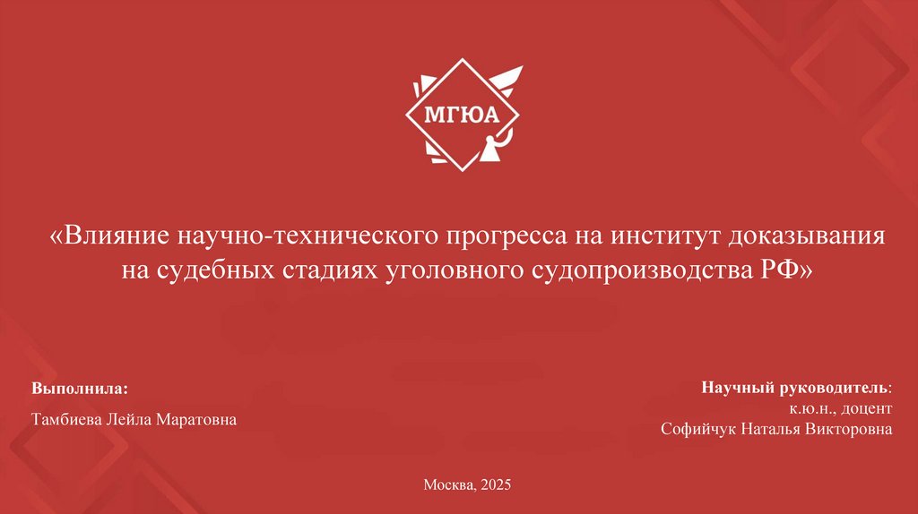 «Влияние научно-технического прогресса на институт доказыванияна судебных стадиях уголовного судопроизводства РФ»