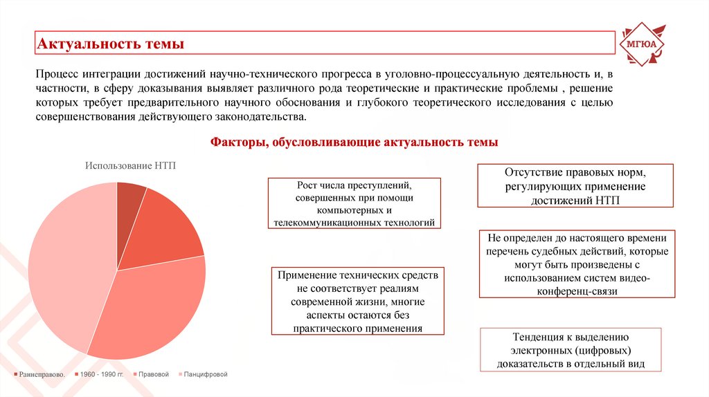 Актуальность темыПроцесс интеграции достижений научно-технического прогресса в уголовно-процессуальную деятельность и, в