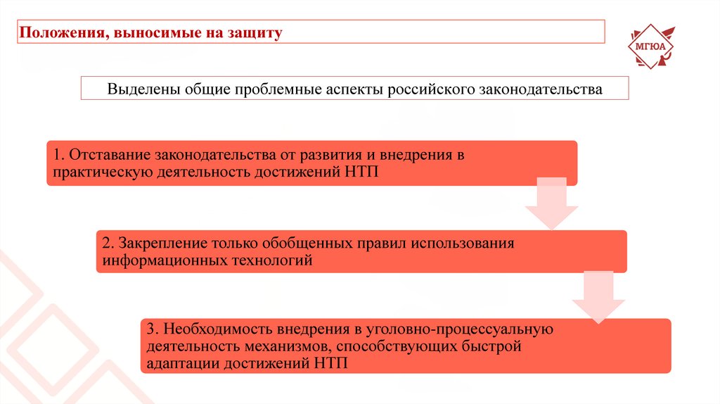 Положения, выносимые на защитуВыделены общие проблемные аспекты российского законодательства
