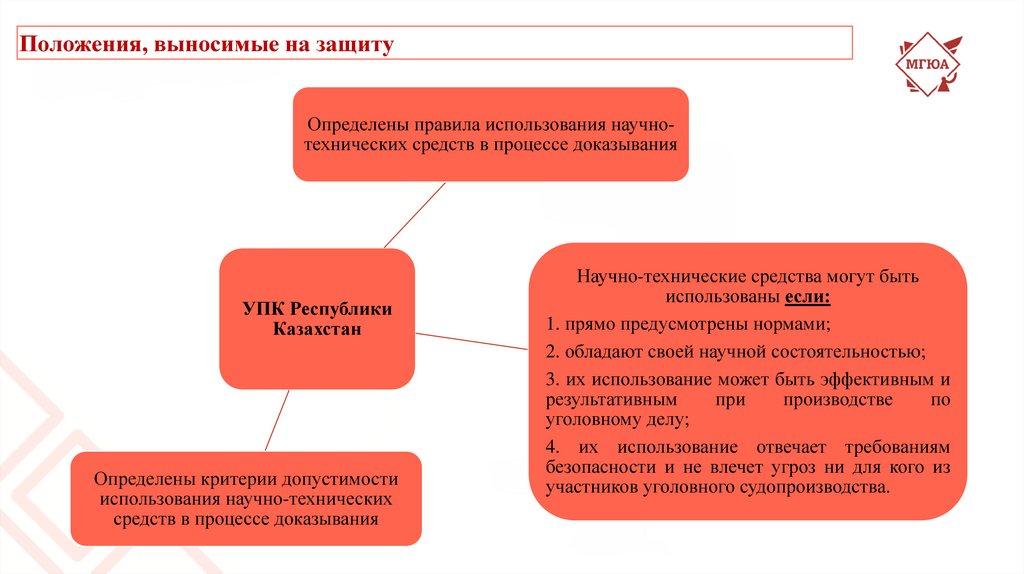 Положения, выносимые на защитуОпределены правила использования научнотехнических средств в процессе доказывания