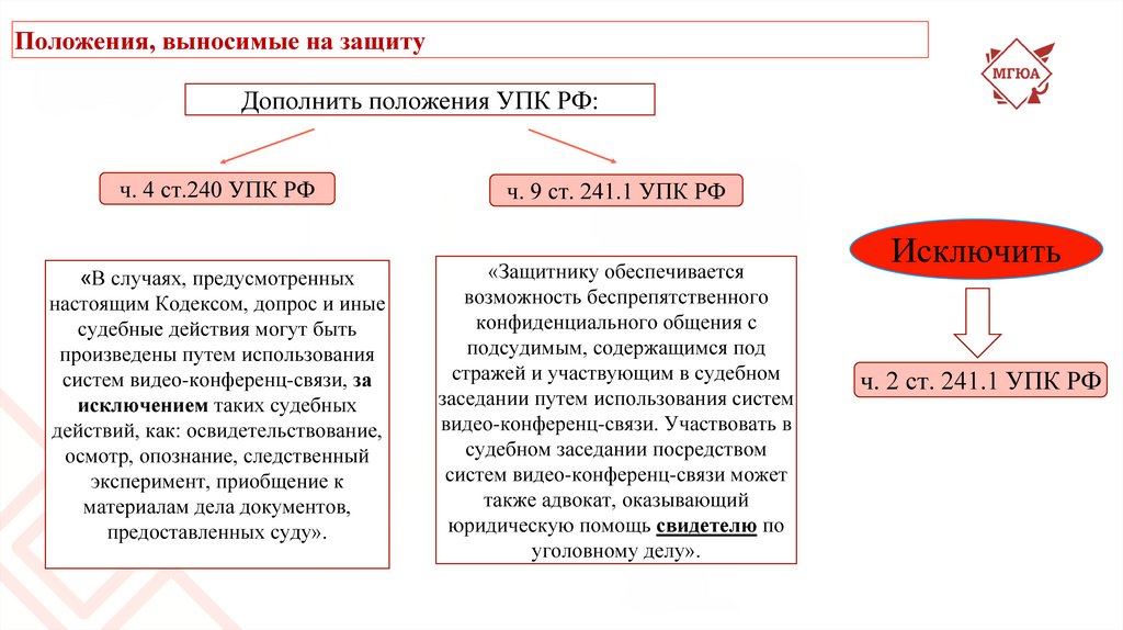 Положения, выносимые на защитуДополнить положения УПК РФ: