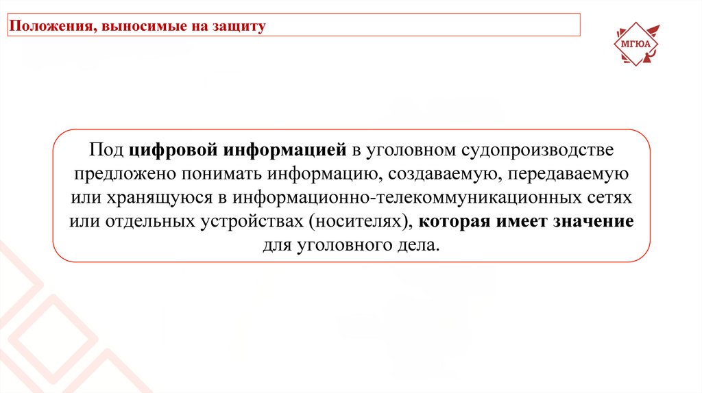 Положения, выносимые на защитуПод цифровой информацией в уголовном судопроизводстве