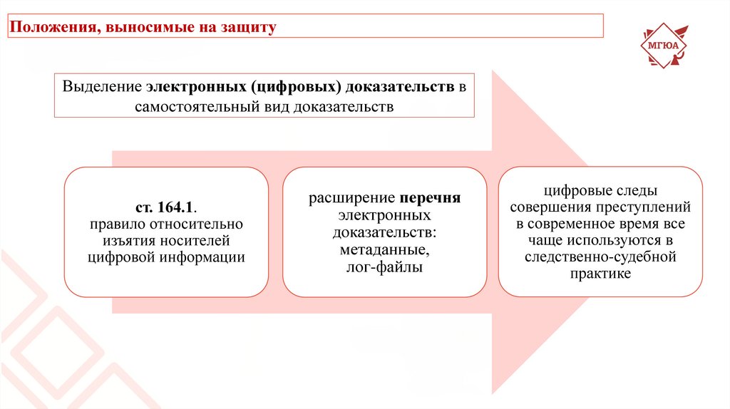 Положения, выносимые на защитуВыделение электронных (цифровых) доказательств в