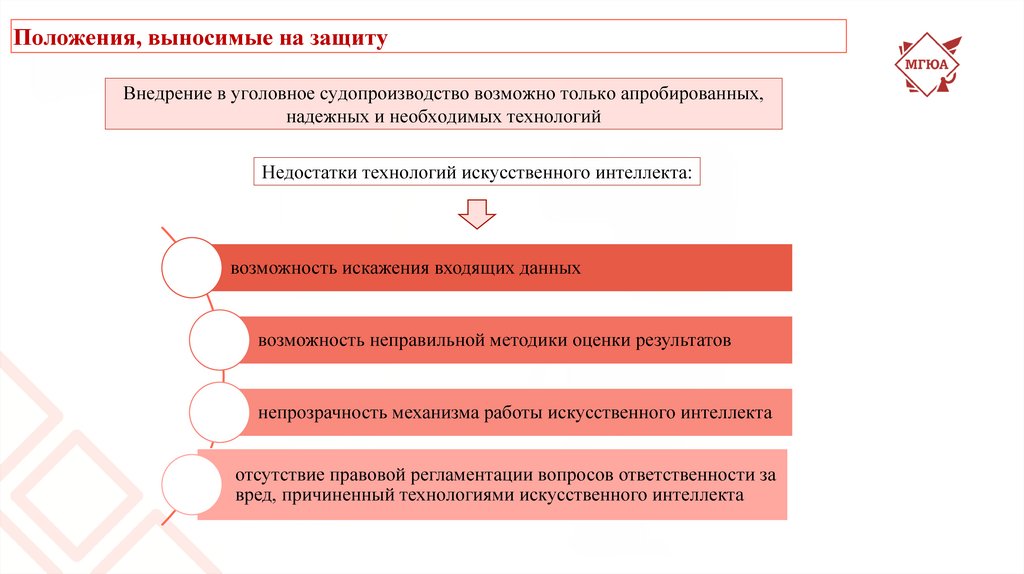 Положения, выносимые на защитуВнедрение в уголовное судопроизводство возможно только апробированных,