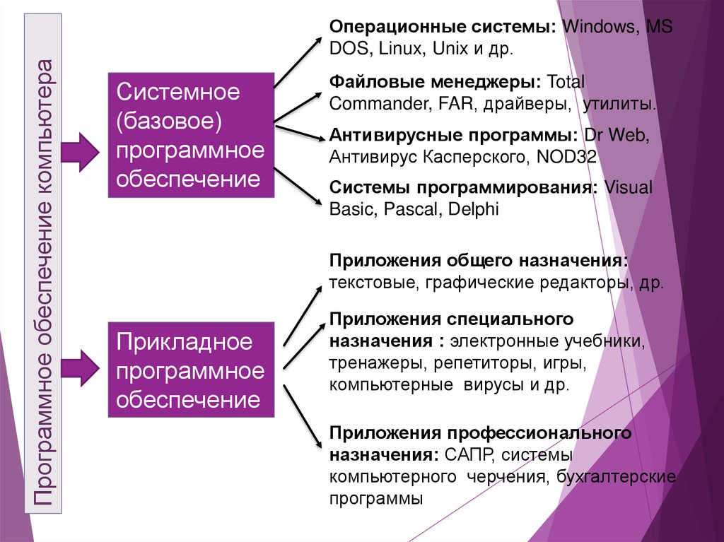 Графические, звуковые, видео редакторыСистемы управления базами данных (СУБД) и т. п.