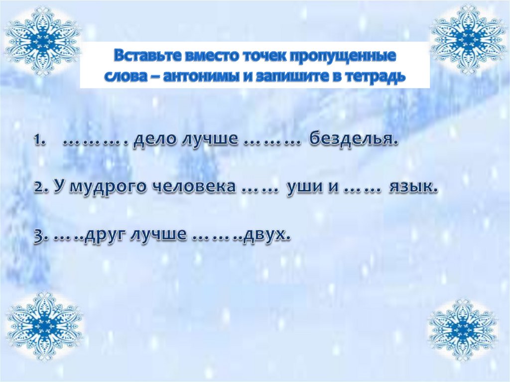 Пришла (холодная, снежная, белая, морозная)зима. Стоят (сильные, лютые, крепкие) морозы.