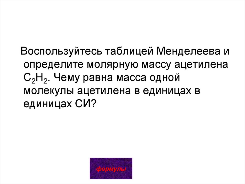 Воспользуйтесь таблицей Менделеева иопределите молярную массу ацетилена
