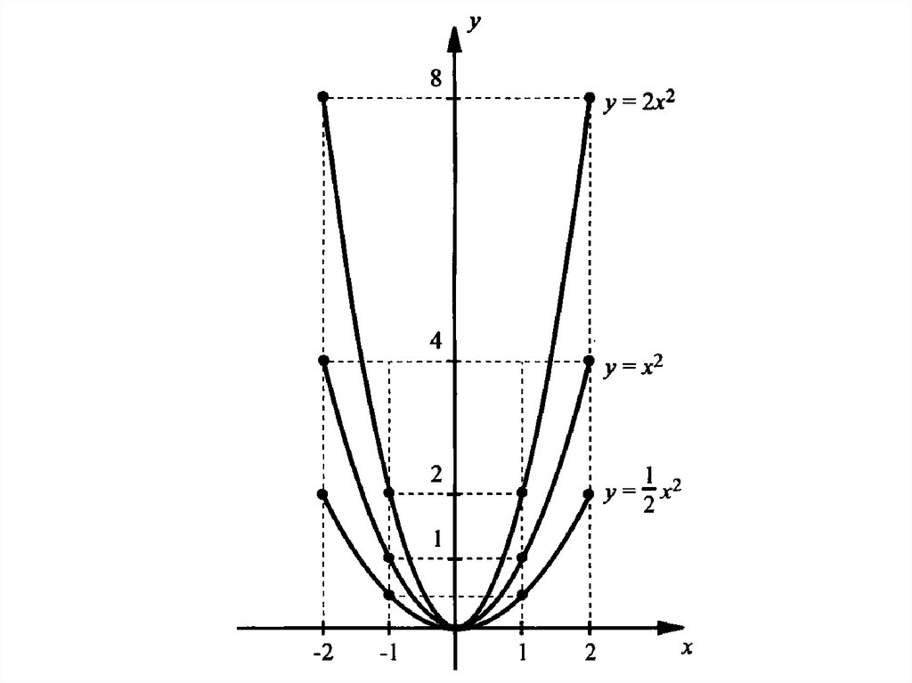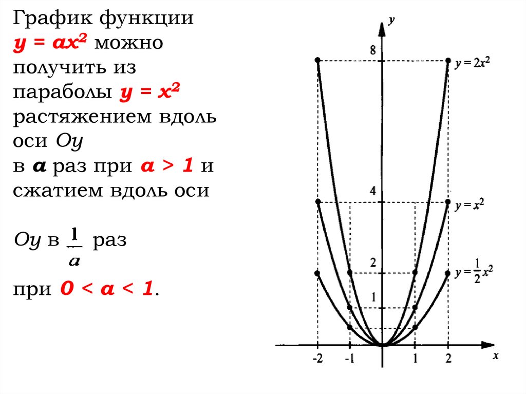 При каждом значении х значения функции у = 1/2х2 в два раза