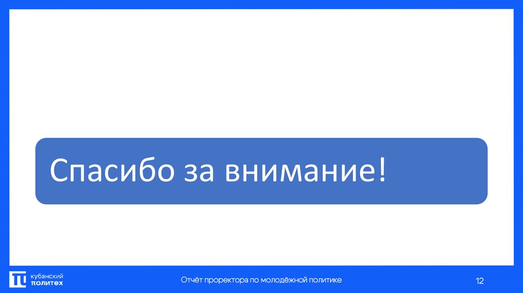 Спасибо за внимание!Отчёт проректора по молодёжной политике