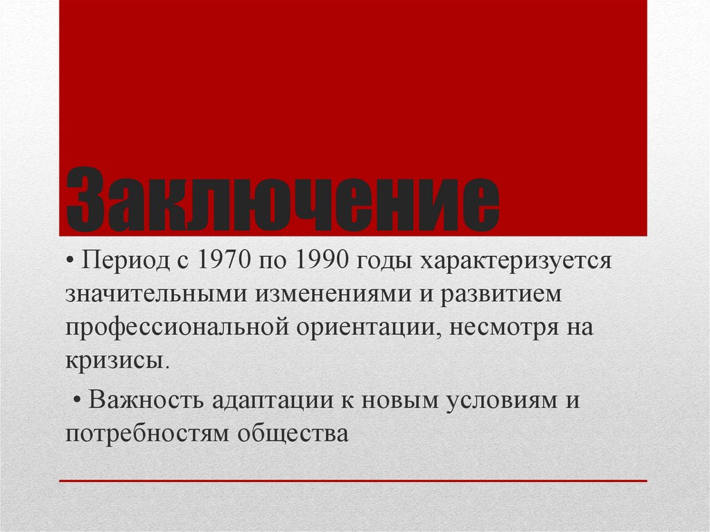 Заключение• Период с 1970 по 1990 годы характеризуется