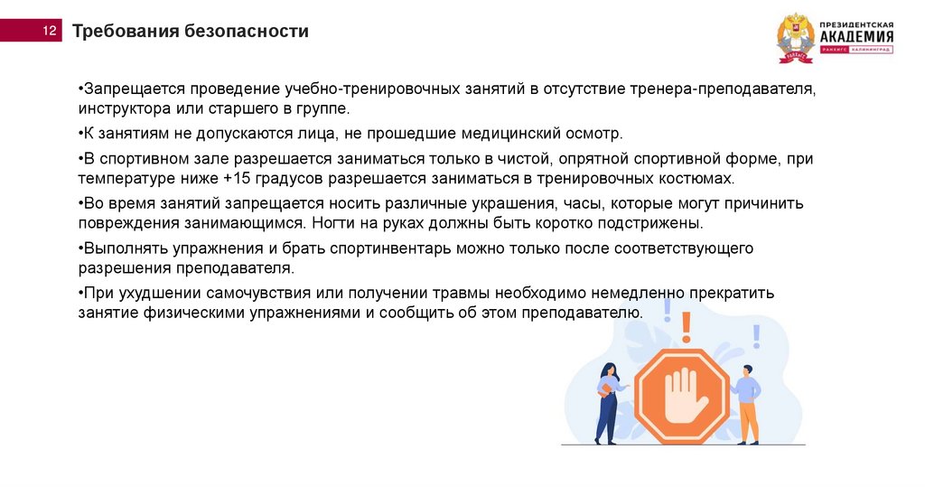 •Запрещается проведение учебно-тренировочных занятий в отсутствие тренера-преподавателя,