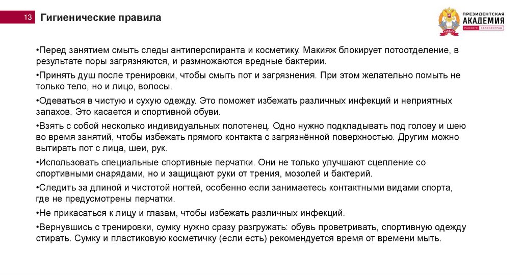 13Гигиенические правила