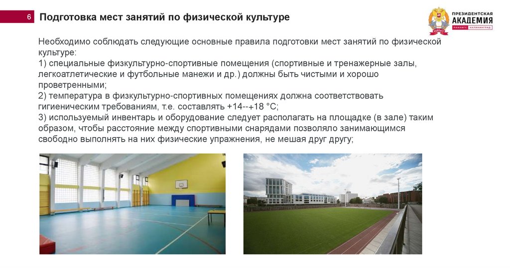 6Подготовка мест занятий по физической культуре