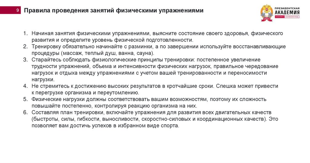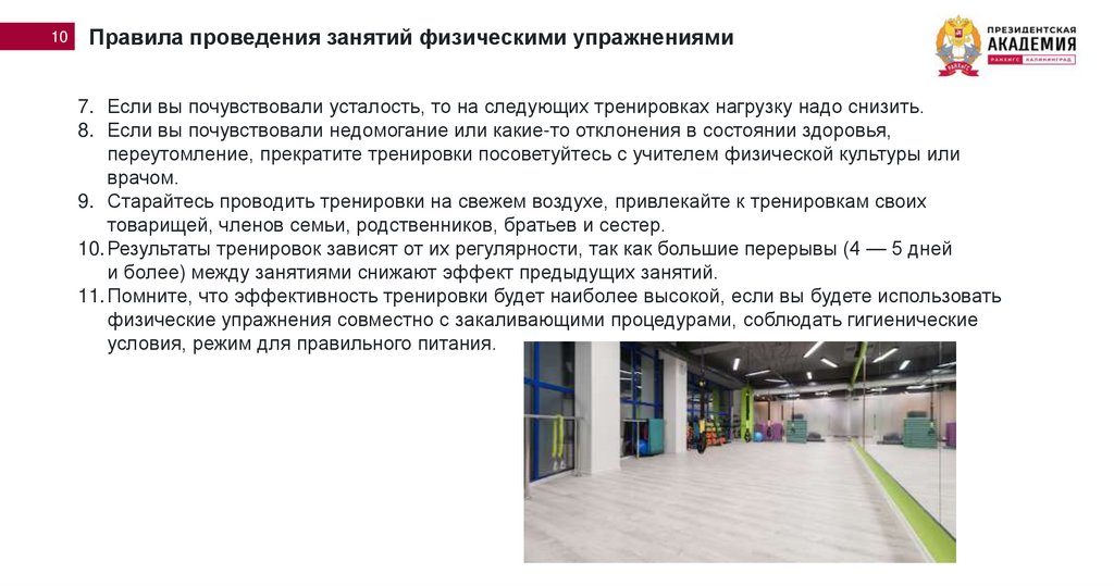 Правила проведения занятий физическими упражнениями10