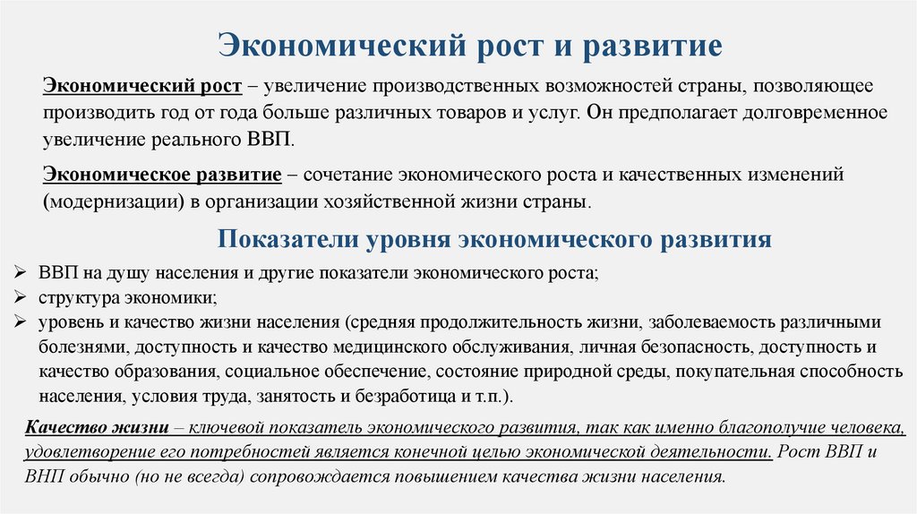 Экономическое развитие – сочетание экономического роста и качественных изменений