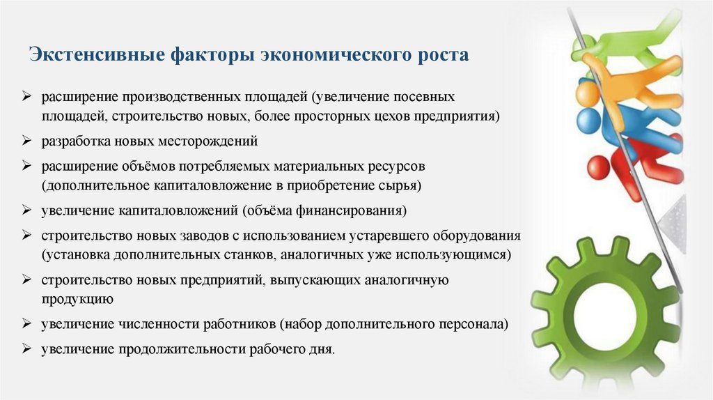 Экстенсивные факторы экономического ростарасширение производственных площадей (увеличение посевных