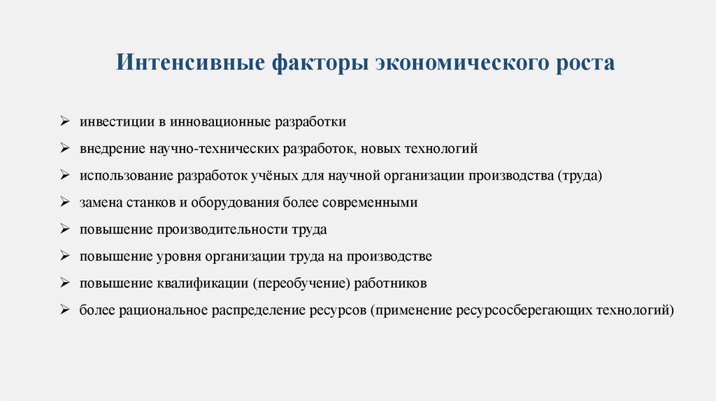Интенсивные факторы экономического ростаинвестиции в инновационные разработки