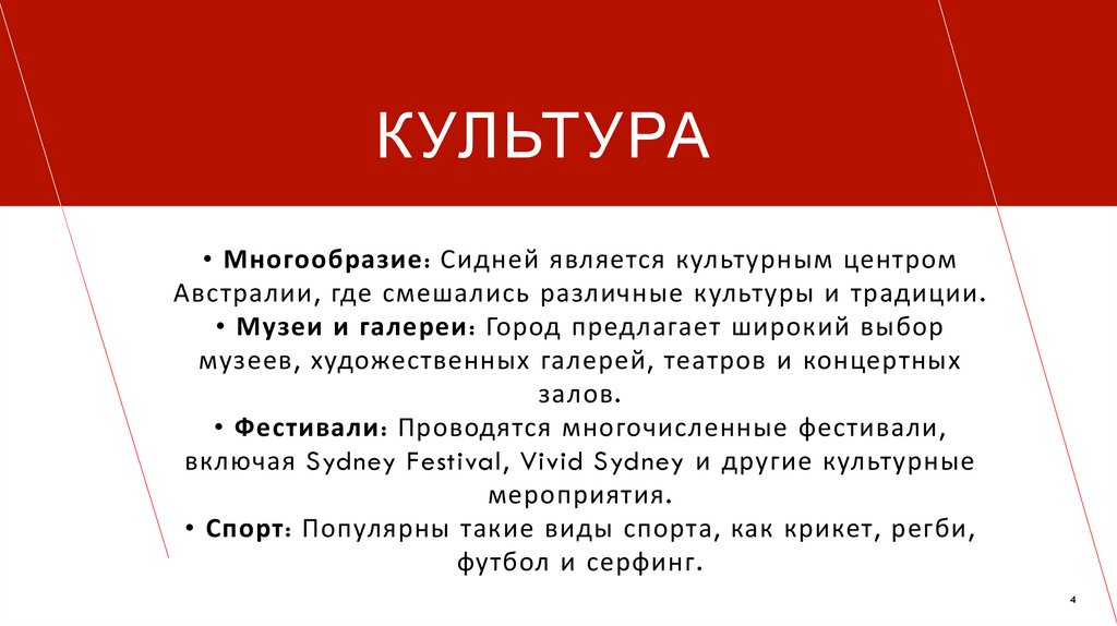 КУЛЬТУРА• Многообразие: Сидней является культурным центром