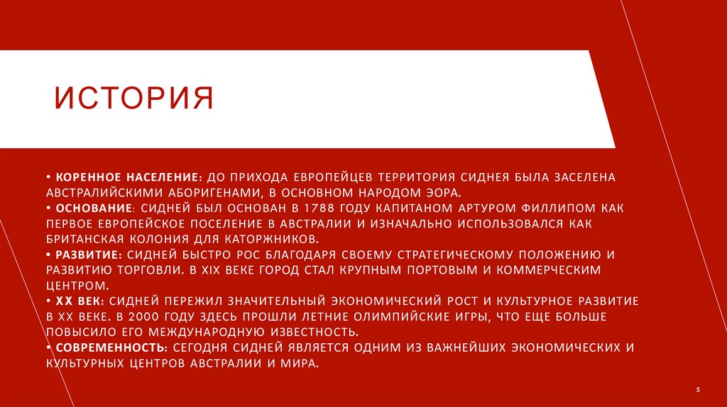 • ОСНОВАНИЕ: СИДНЕЙ БЫЛ ОСНОВАН В 1788 ГОДУ КАПИТАНОМ АРТУРОМ ФИЛЛИПОМ КАК
