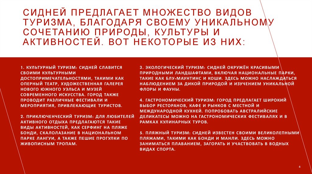 С И Д Н Е Й П Р Е Д Л А ГА Е Т М Н ОЖ Е СТ ВО В И Д О ВТ У Р И З М А , Б Л А ГОД А РЯ С ВО Е М У У Н И К А Л Ь Н О М У