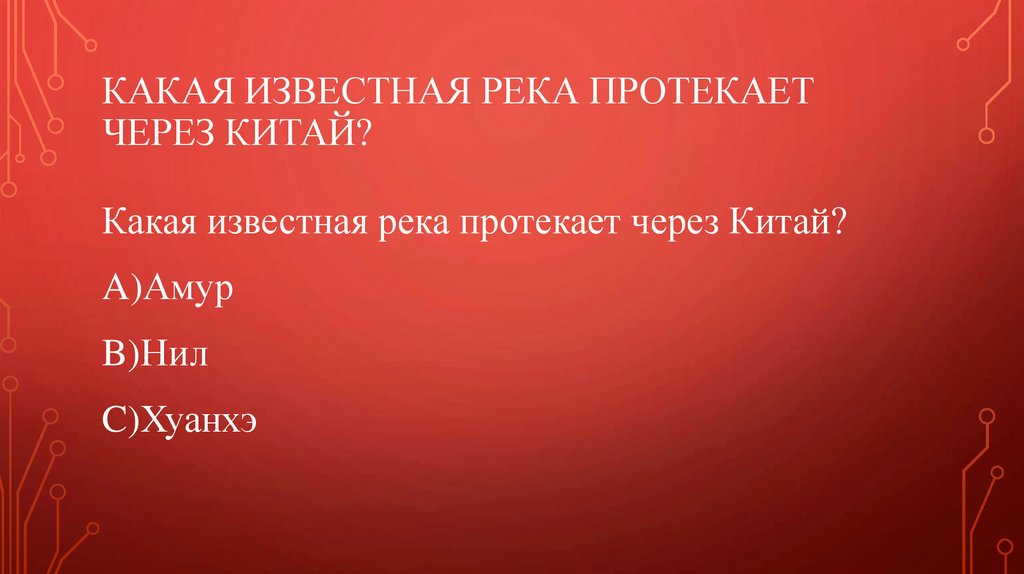 КАКАЯ ИЗВЕСТНАЯ РЕКА ПРОТЕКАЕТЧЕРЕЗ КИТАЙ?