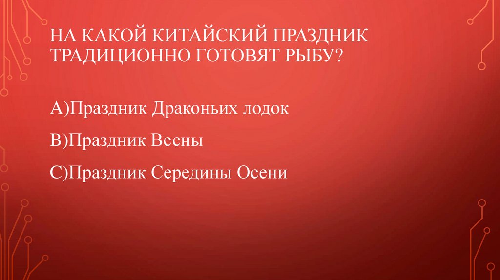 НА КАКОЙ КИТАЙСКИЙ ПРАЗДНИКТРАДИЦИОННО ГОТОВЯТ РЫБУ?