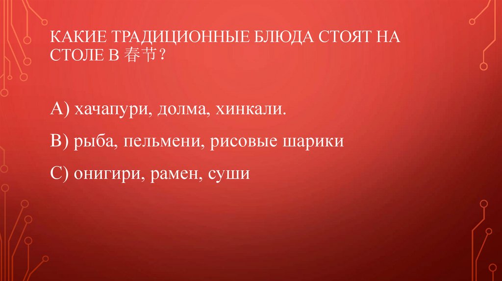 КАКИЕ ТРАДИЦИОННЫЕ БЛЮДА СТОЯТ НАСТОЛЕ В 春节