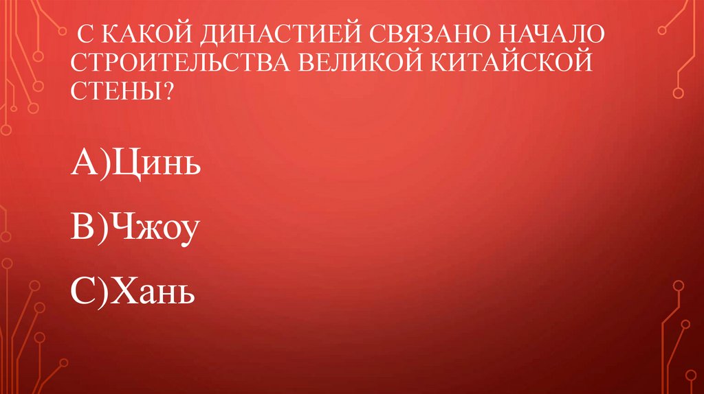 С КАКОЙ ДИНАСТИЕЙ СВЯЗАНО НАЧАЛОСТРОИТЕЛЬСТВА ВЕЛИКОЙ КИТАЙСКОЙ