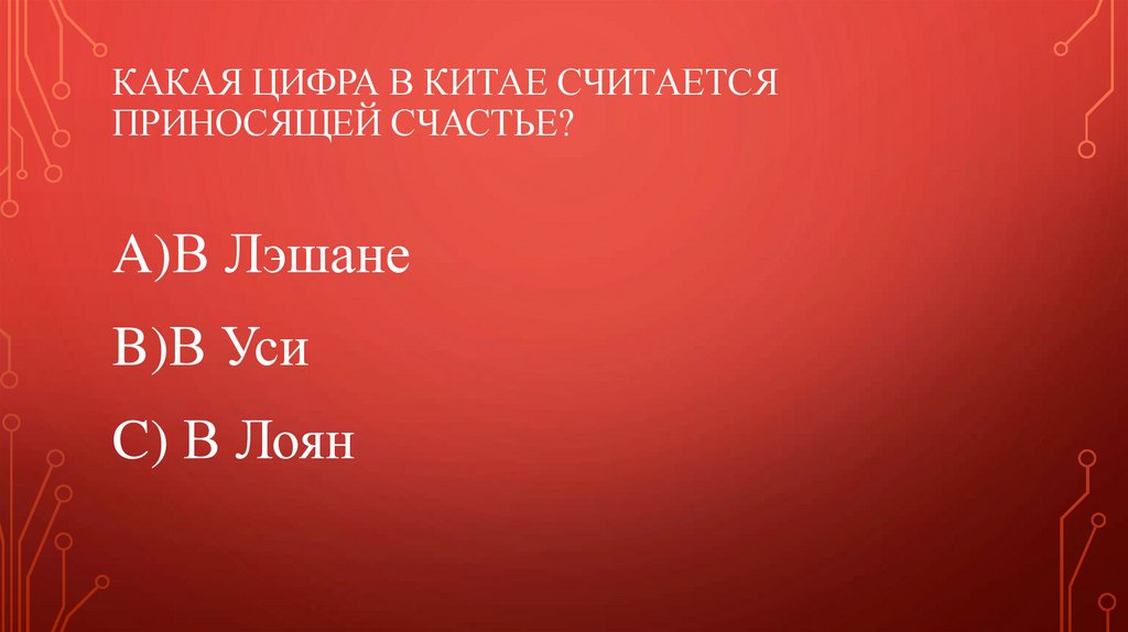 КАКАЯ ЦИФРА В КИТАЕ СЧИТАЕТСЯПРИНОСЯЩЕЙ СЧАСТЬЕ?