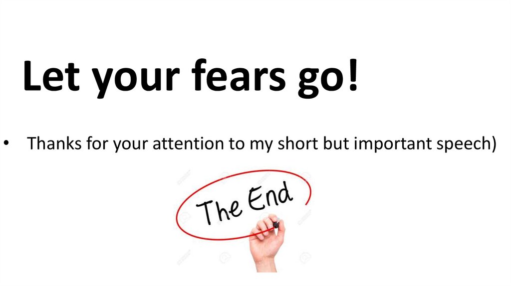 Let your fears go!• Thanks for your attention to my short but important speech)