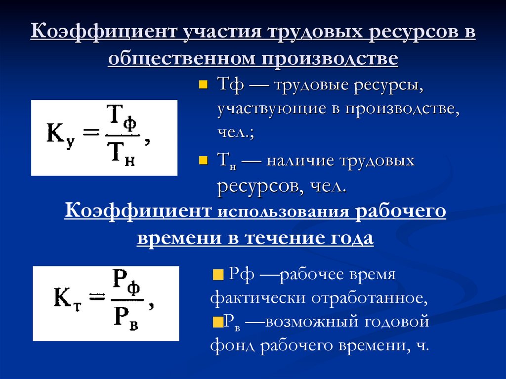 Коэффициент участия трудовых ресурсов вобщественном производстве