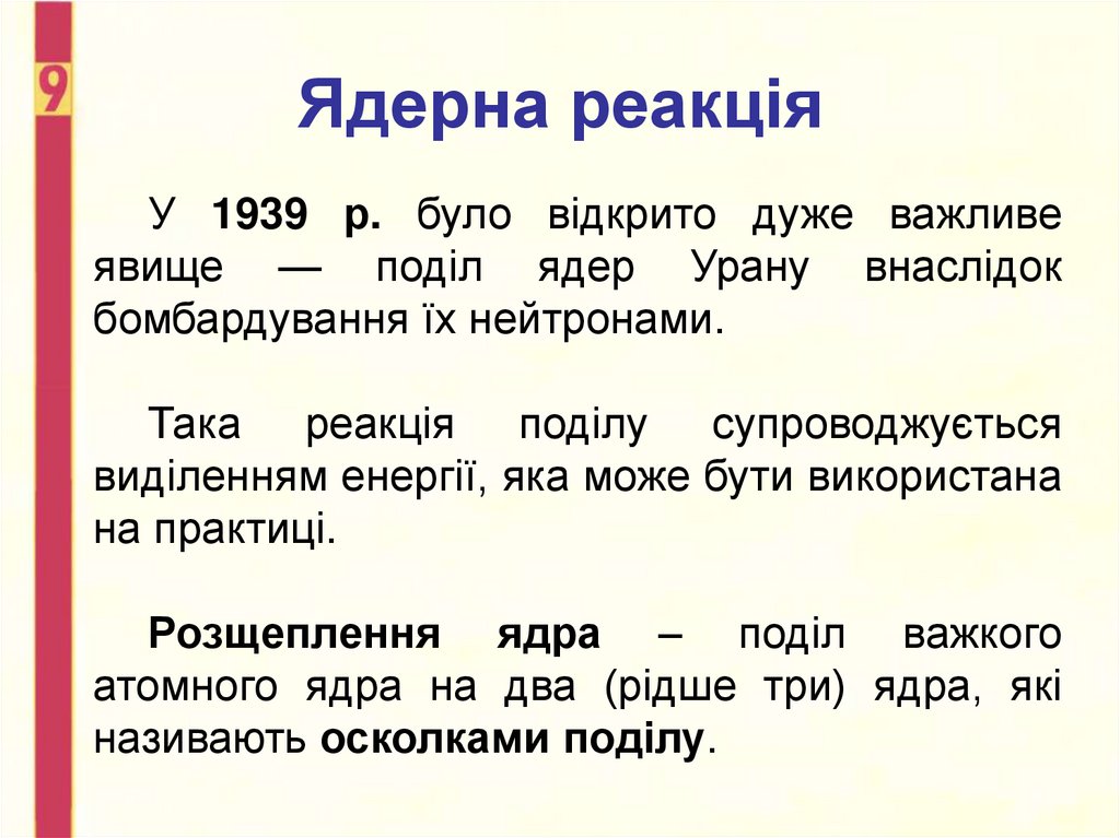 У 1939 р. було відкрито дуже важливеявище — поділ ядер Урану внаслідок
