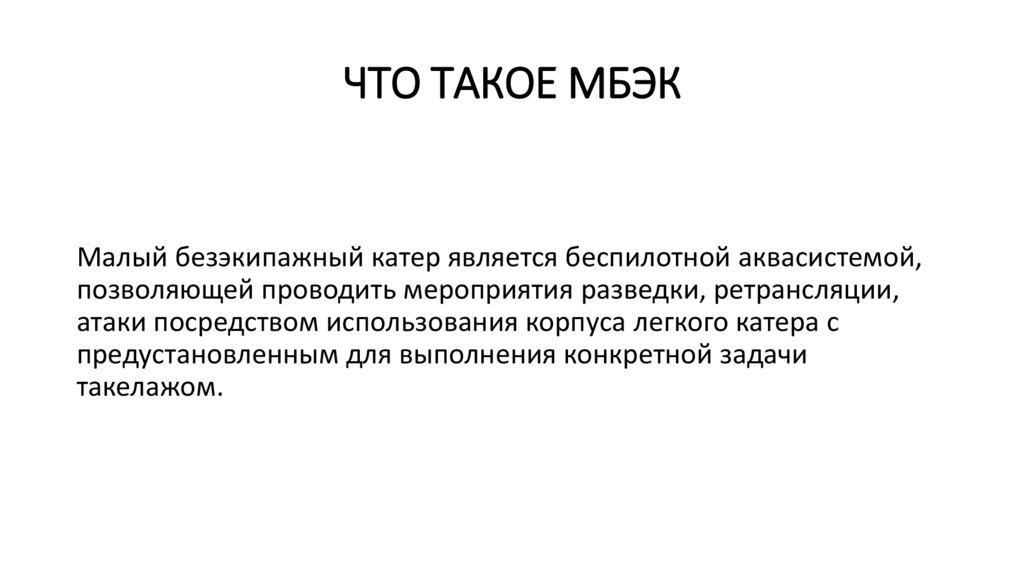 ЧТО ТАКОЕ МБЭКМалый безэкипажный катер является беспилотной аквасистемой,