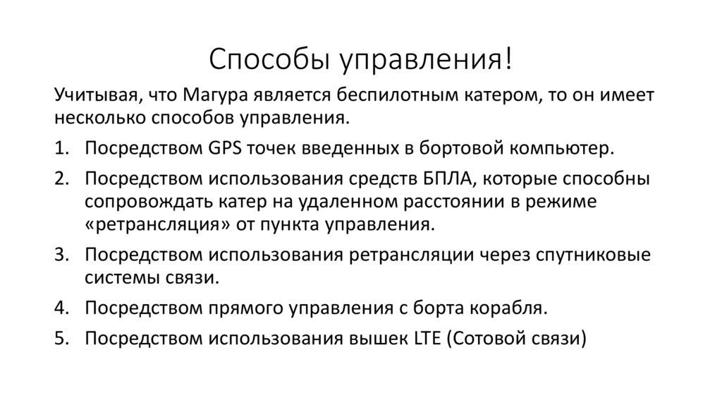 Способы управления!Учитывая, что Магура является беспилотным катером, то он имеет