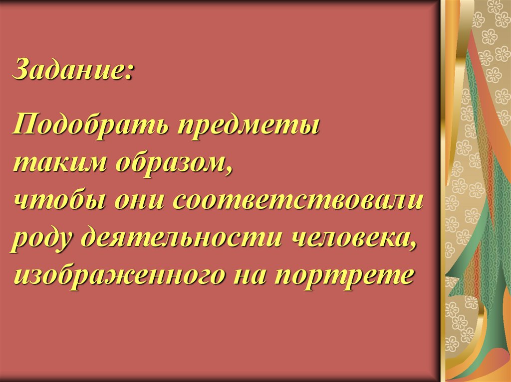 Задание:Подобрать предметы