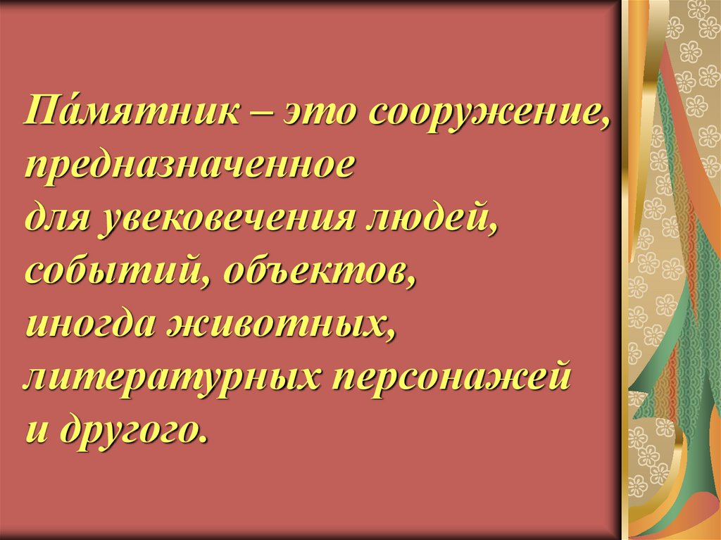 Па́мятник – это сооружение,предназначенное