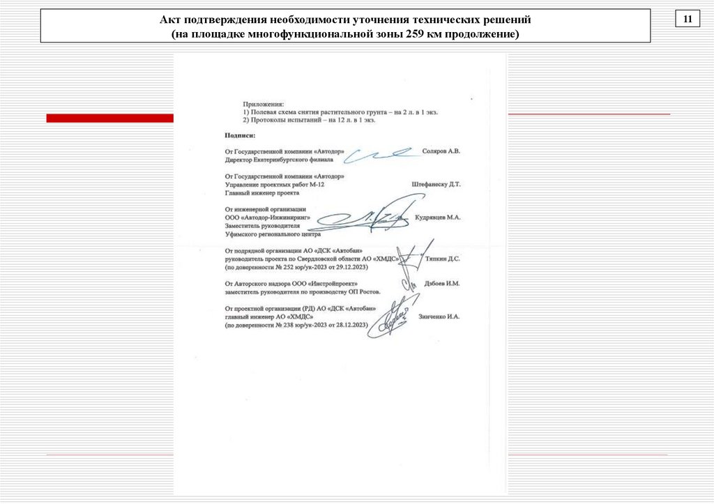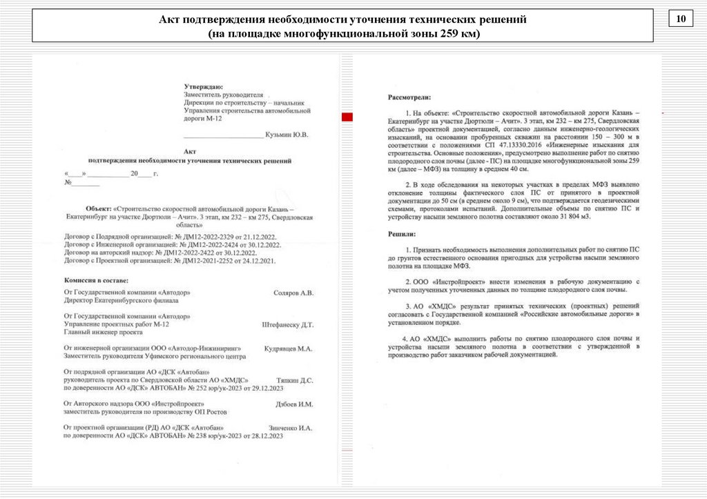 Акт подтверждения необходимости уточнения технических решений(на площадке многофункциональной зоны 259 км продолжение)