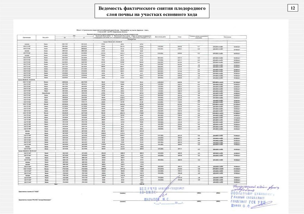 Ведомость фактического снятия плодородногослоя почвы на участках основного хода
