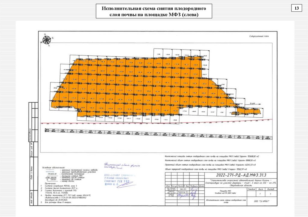 Исполнительная схема снятия плодородногослоя почвы на площадке МФЗ (слева)
