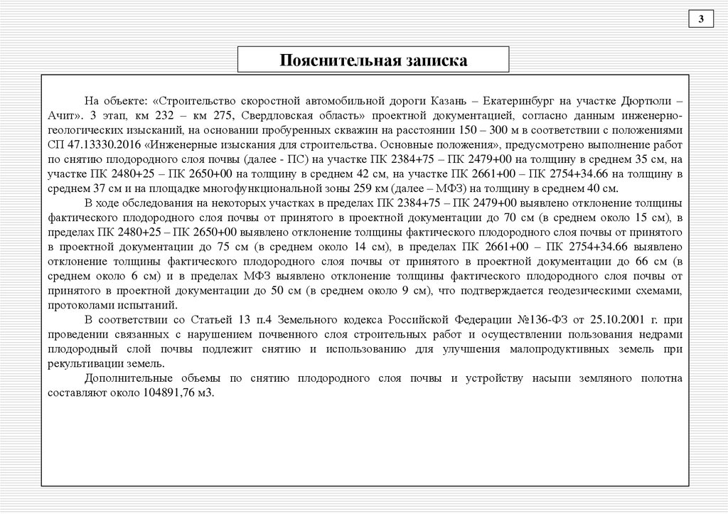 Ачит». 3 этап, км 232 – км 275, Свердловская область» проектной документацией, согласно данным инженерногеологических изысканий, на основании пробуренных скважин на расстоянии 150 – 300 м в соответствии с положениями