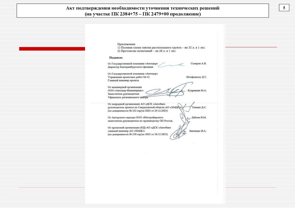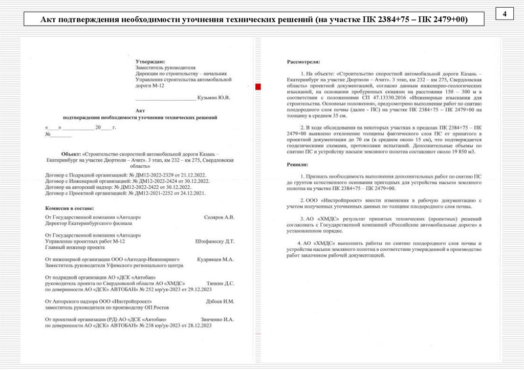 Акт подтверждения необходимости уточнения технических решений (на участке ПК 2384+75 – ПК 2479+00)4