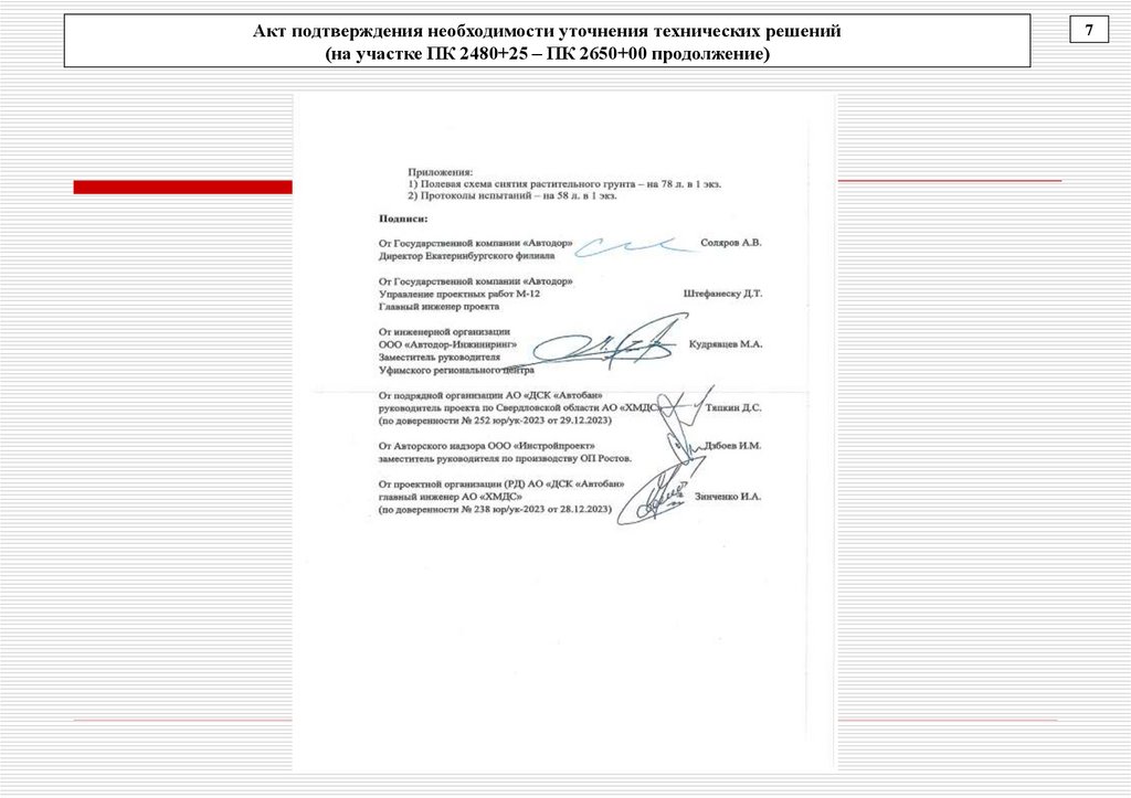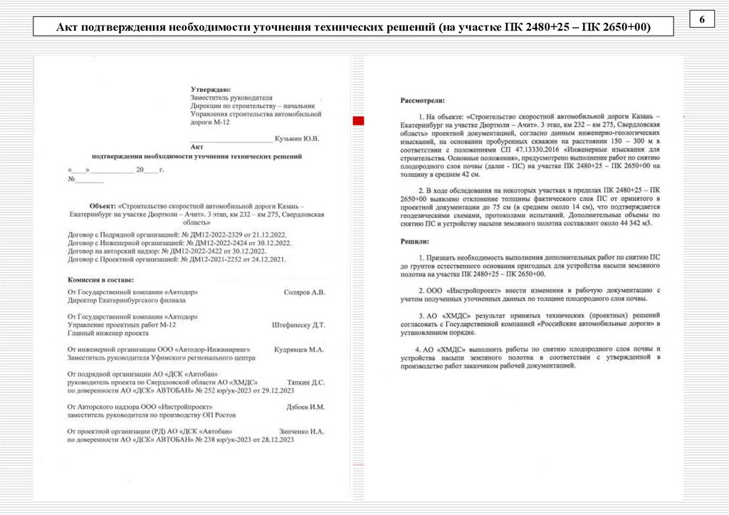 Акт подтверждения необходимости уточнения технических решений (на участке ПК 2480+25 – ПК 2650+00)6