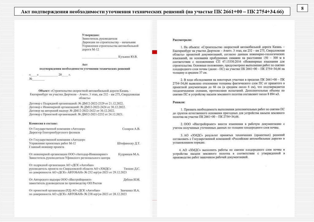 Акт подтверждения необходимости уточнения технических решений (на участке ПК 2661+00 – ПК 2754+34.66)8