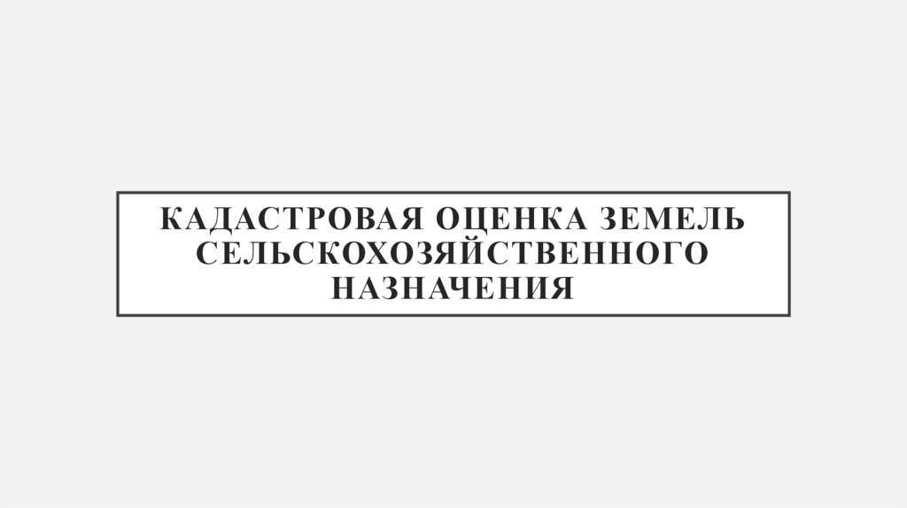 КАДАСТРОВАЯ ОЦЕНКА ЗЕМЕЛЬСЕЛЬСКОХОЗЯЙСТВЕННОГО