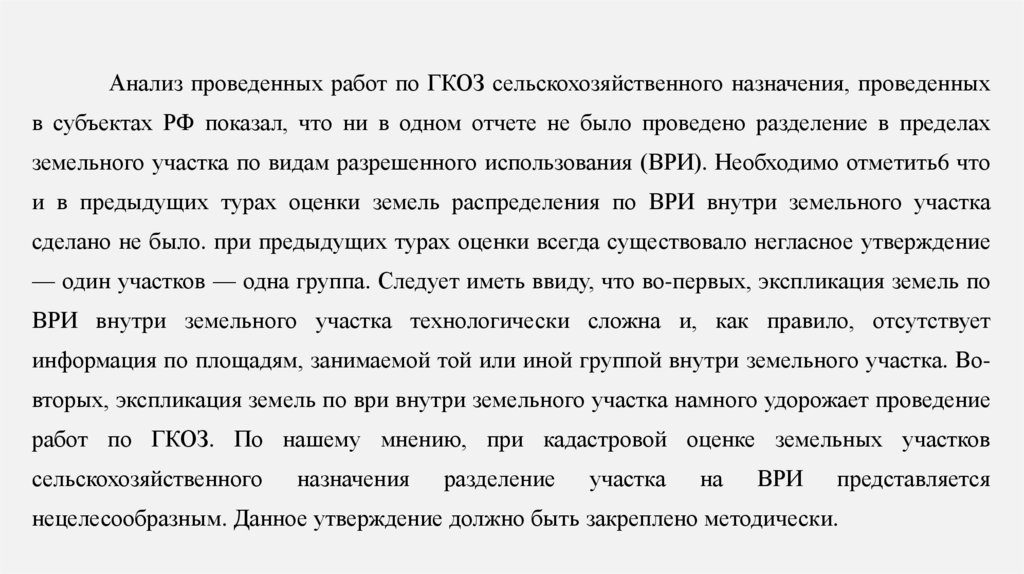 Анализ проведенных работ по ГКОЗ сельскохозяйственного назначения, проведенныхв субъектах РФ показал, что ни в одном отчете не было проведено разделение в пределах