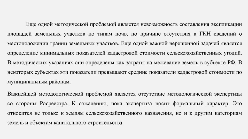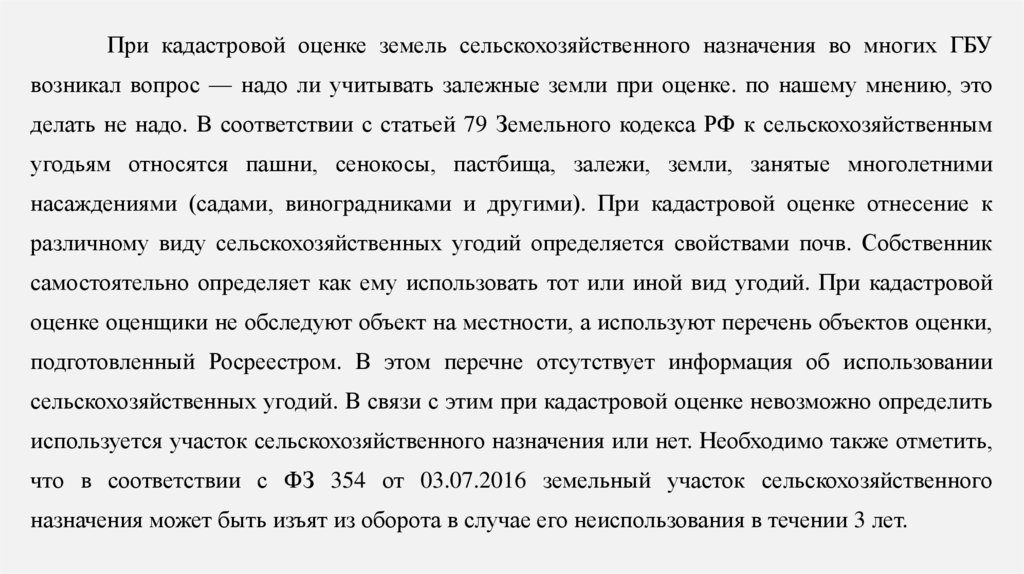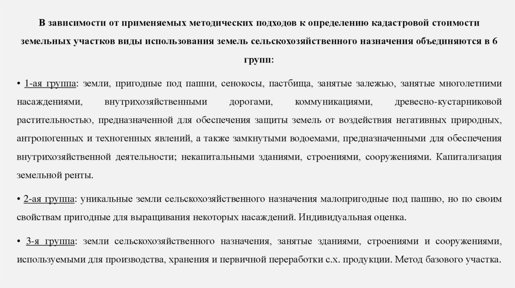 сельскохозяйственных угодий. В связи с этим при кадастровой оценке невозможно определить