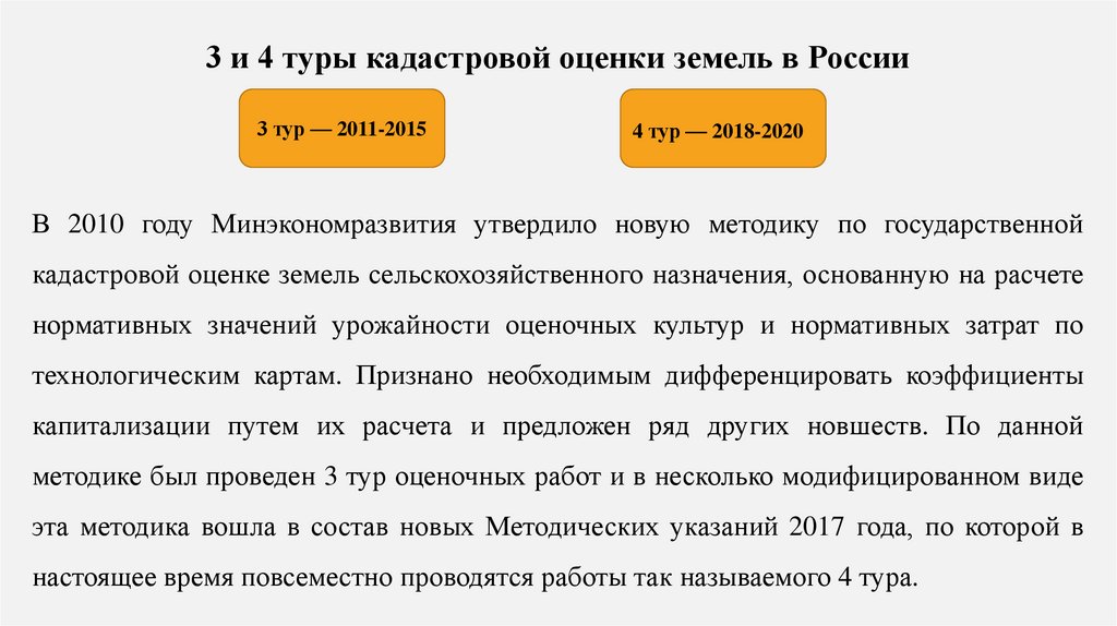 3 и 4 туры кадастровой оценки земель в России3 тур — 2011-2015