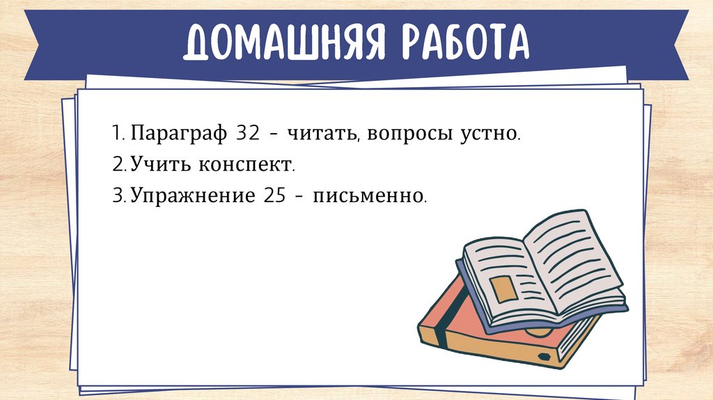 1. Параграф 32 - читать, вопросы устно.2. Учить конспект.